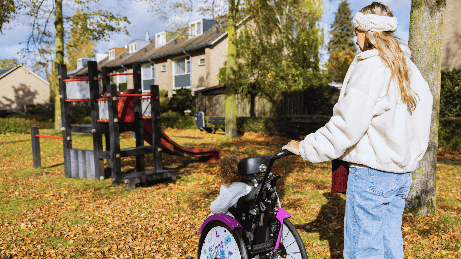 “Minthe wil niets liever dan meedoen in de speeltuin, met de buurtkinderen. Maar de speelplek om de hoek is nog niet klaar voor haar: met haar rolstoel kan ze niet bij de toestellen komen.”